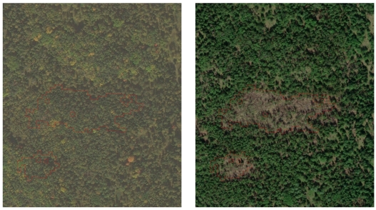 Дешифрирование космических снимков показало, что наибольшее количество древостоев пострадало от воздействия насекомых-вредителей